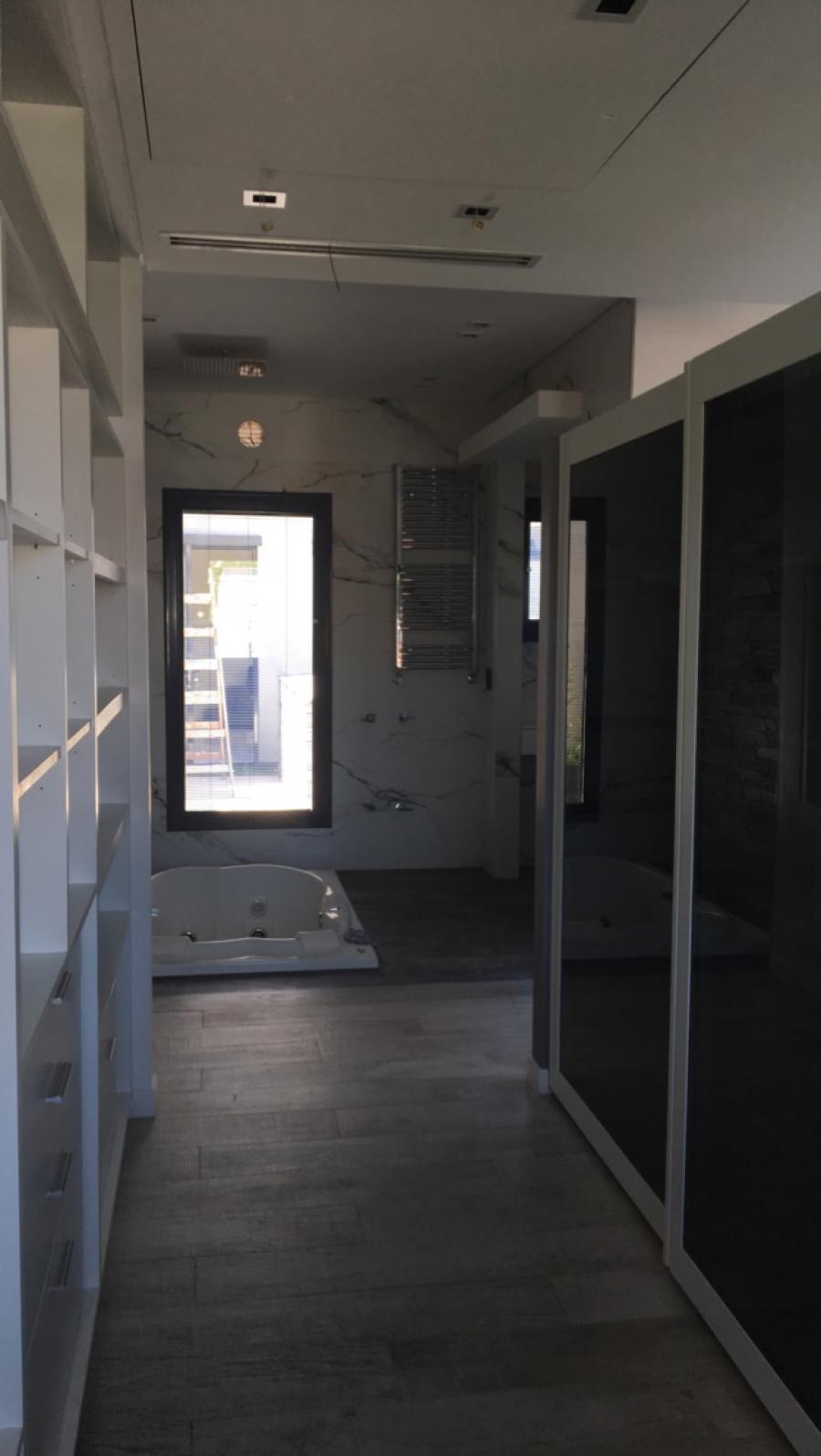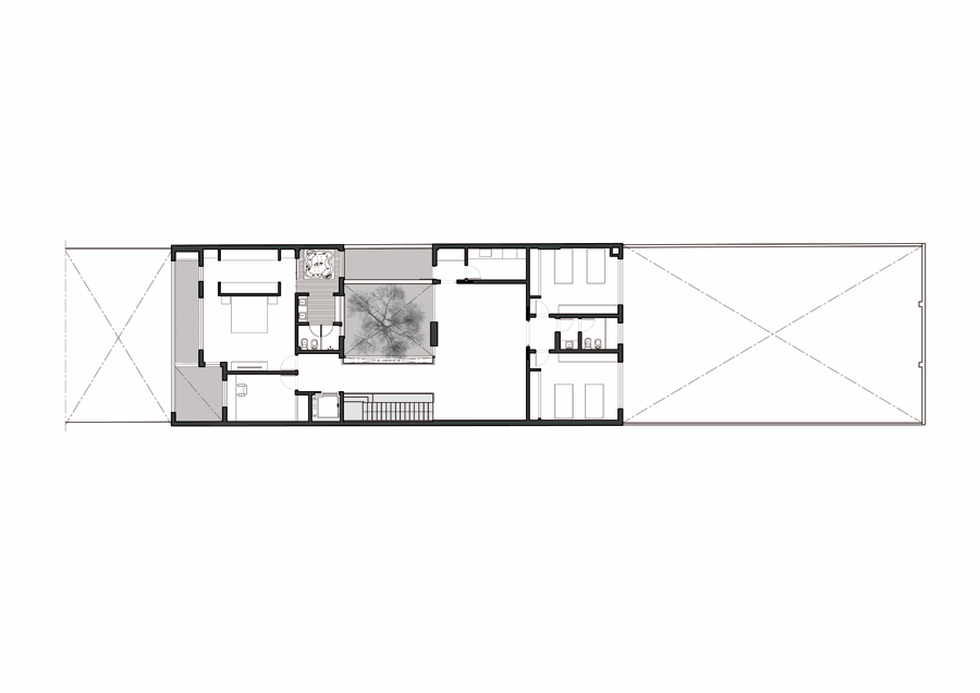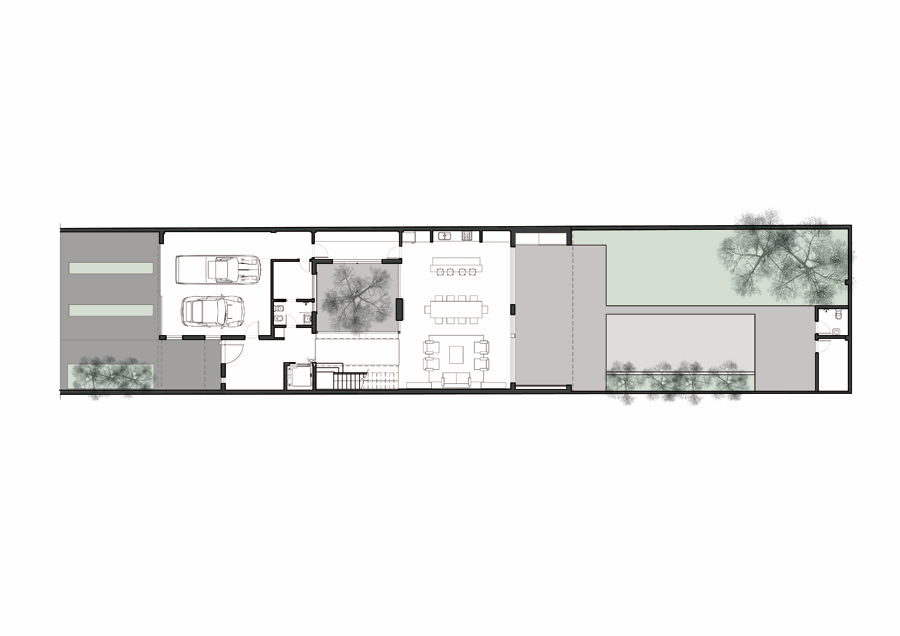 Una casa de amplias dimensiones y con suntuosos de detalles. Propuesta clara en dos plantas, en donde el patio central organiza los generosos espacios, brindando calidez, iluminación y privacidad. La estética buscada es la de una volumetría simple entre medianeras y con presencia de materiales nobles modernos como piedra, aluminio y texturables.