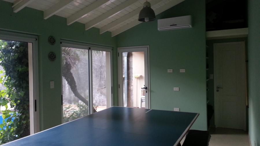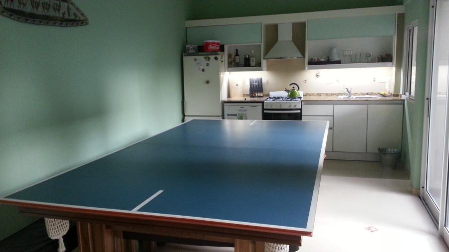mesa multifuncional para 20 comensales/pool/ping-pong. En otra etapa se intervinieron el comedor principal y el jardín con deck y pileta